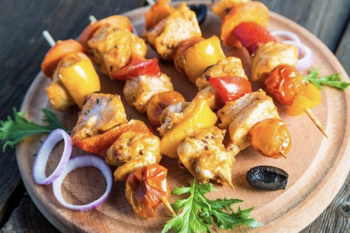 Вкусный рецепт — медовый куриный шашлык с овощами.