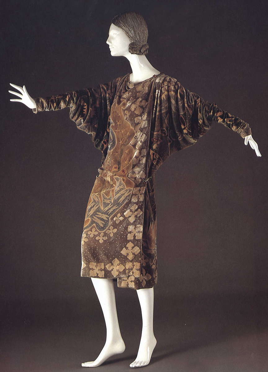 Эта бархатная вечерняя накидка с ручной росписью — редкий и удачный пример сотрудничества модельера и художника-авангардиста. Созданная американской кутюрье Валентиной и расписанная художником Моррисом Кантором, она является одним из самых ранних известных образцов работ каждого из мастеров. Валентина родилась в Киеве в 1904 году. Подробности о её происхождении, о том, как она в юности училась балету и актерскому мастерству в России вплоть до революции, и о её дерзком побеге в Нью-Йорк через Турцию, Грецию и юг Франции, позже были романтизированы, чтобы создать драматический образ, который стал лучшей рекламой модной одежды Валентины. В 1928 году Валентина открыла небольшое ателье, где благодаря своей индивидуальности она завоевала популярность у влиятельной клиентуры, включавшей нью-йоркское высшее общество, а также театральных, оперных и кинозвёзд. До выхода на пенсию в 1957 году она была законодательницей американской моды; она одевала Вандербильтов, Асторов и Уитни, а также Кэтр