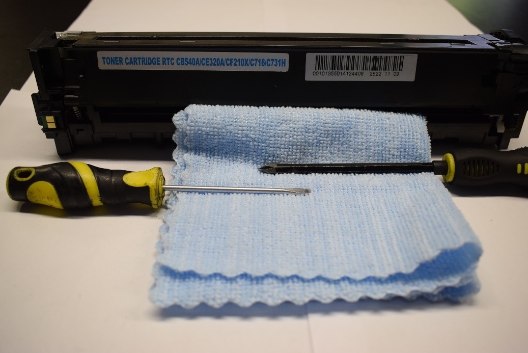 И снова здравствуйте. На этой неделе покажу вам, как почистить и заправить цветной картридж HP CF210X Black. Цветные картриджи заправляются аналогично. Данный картридж устанавливается в такие модели, как HP Color LaserJet M251 (Pro 200 color), M251n, M251nw, M276 (Pro 200 color MFP), M276n (200 color MFP), M276nw (200 color MFP). Так же подобный картридж идёт в огромный список от Canon. Ресурс картриджа рассчитан на 2400 станиц при 5% заполнении листа. Как обычно, для работы нам потребуется пара отвёрток, тряпка и прямые руки)) С обеих сторон выкручиваем по два внта и снимаем боковые крышки. P.S.1 Лучше делать это, когда картридж лежит в горизонтальном положении, чтобы исключить просыпания отработанного тонера из бункер отходов. Переходим как проявочной части Съём фотобарабана достаточно прост. Снимаем аккуратно вал заряда с держателей. Хорошенько его отмываем от налета Откручиваем с помощью крестовой отвертки два винта по бокам, те, что держат ракель. Снимаем его, вытряхиваем отработа