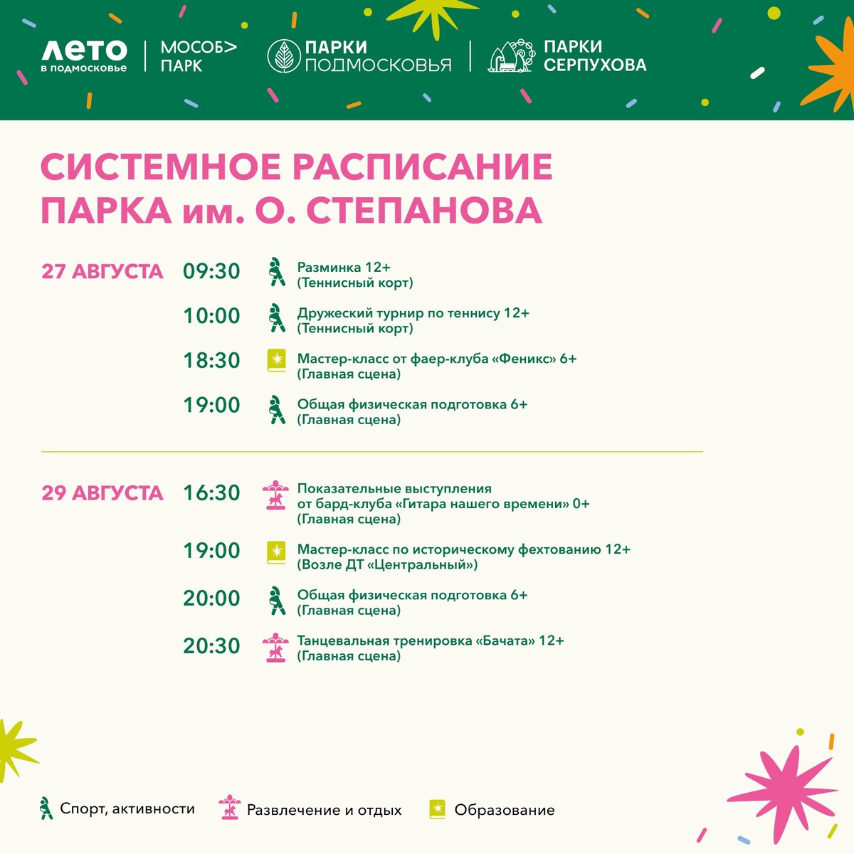 ✨ Мероприятия в парке им. О. Степанова Приглашаем на разные мероприятия в наш парк 🌳 🏢 Парк им.Олега Степанова 📍 г. Серпухов, ул. Луначарского, д.74 💰 Вход свободный❗️ ⭐Разместить публикацию ⭐Поддержать канал голосом 💰 Стань курьером в Серпухове – твой доход, твое время! ✅ Мероприятия Серпухов https://dzen.ru/id/66f01c6eb4c6fe60c9ca1608 http://vk.com/serpukhov_events http://dzen.ru/serpukhov_events
