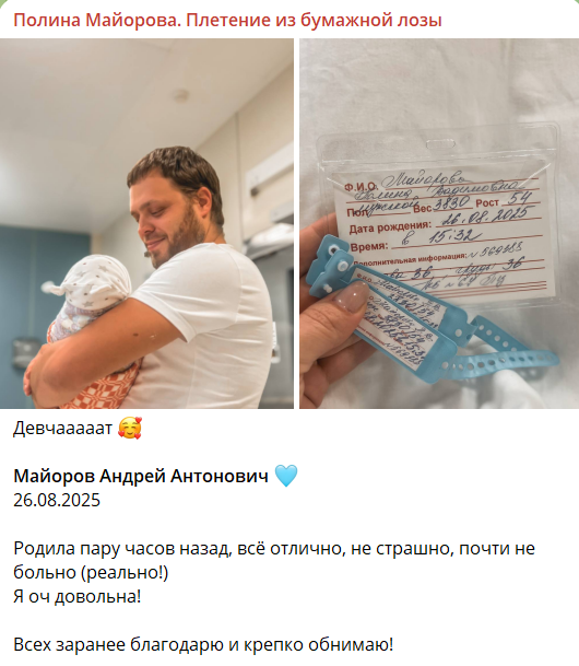 Вчера у мастерицы, автора школы "Плету лозу" и книги "От корзины до комода. Плети, как дизайнер" Полины Майоровой родился малыш, о чем она и сообщила в своем телеграм-канале. Давайте поздравим мастерицу с малышом. Все-таки она большая умница - до последнего оставалась у строю, ей уже рожать, а она все плетет и плетет! :-) Кстати, видели, какую люлечку она сплела для своего малыша? Еще и мастер-класс успела сделать! Если в вашей семье тоже ожидается прибавление, если своему малышу вы тоже хотите сплести люльку, рекомендую заглянуть на сайт Петра Петрушенко. Хотя он посвящен плетению из ивового прута, но идей там немало найдут все, кто увлекается и другими видами плетения. Ну а тем, кто еще не видел книгу Полины Майоровой, предлагаю ее полистать и, возможно, вы захотите пополнить ею свою библиотеку. Всем хорошего дня! Елена