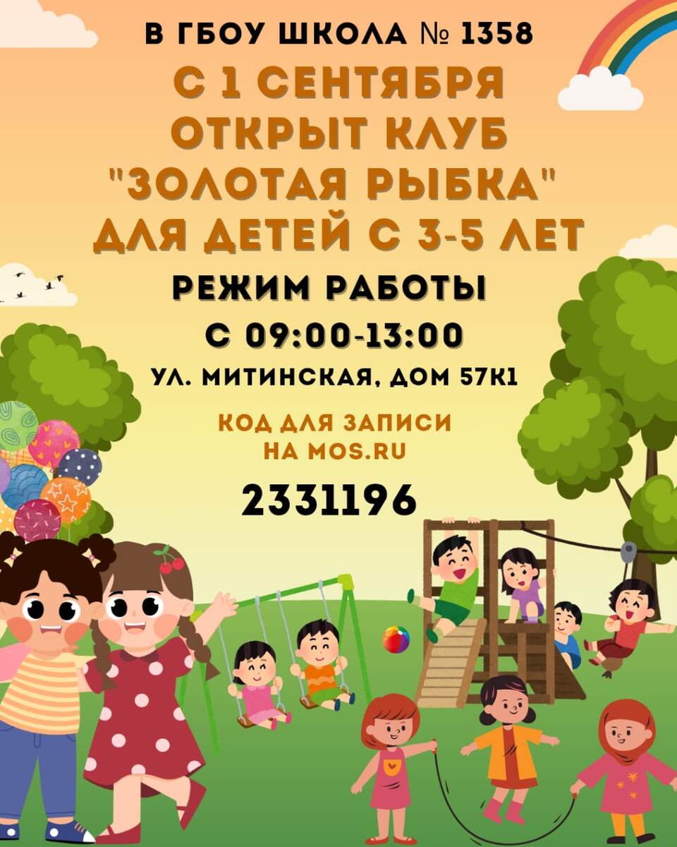 🐥 В детском саду «Созвездие» (Митинская д.57 корпус 1) ОТКРЫВАЕТСЯ КЛУБ «ЗОЛОТАЯ РЫБКА»