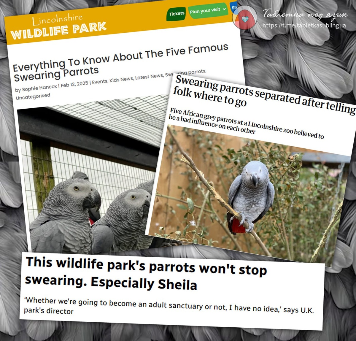 Пять серых попугаев обложили матом посетителей зоопарка Линкольншира🤬 Когда в Линкольнширском зоопарке поселились пять африканских серых попугаев, никто не ожидал, что они настолько красноречивы. Птицы, подаренные разными людьми, сразу нашли общий язык… вернее, общий словарный запас. Когда попугаи начали отпускать жаркие словечки в сторону благонамеренных посетителей, смеяться стали все, кроме работников зоопарка. Английская вежливость тут явно отдыхала — попугаи дружным хором отправляли публику в пешее эротическое путешествие. Неудивительно, что взрослые подначивали их, а дети стали больше узнавать о родном языке. Попугаи разошлись не на шутку – им даже пришлось организовать внеплановые каникулы вдали от публики. Директор парка Стив Николс отметил: «Попугаи перенимают выражения у своих бывших владельцев — в том числе и самые неполиткорректные». Каждый талантище-матершинник — бывший домашний любимец, и все ругательства были уже в их арсенале ещё до приезда в парк. 🦜 Самой грубо