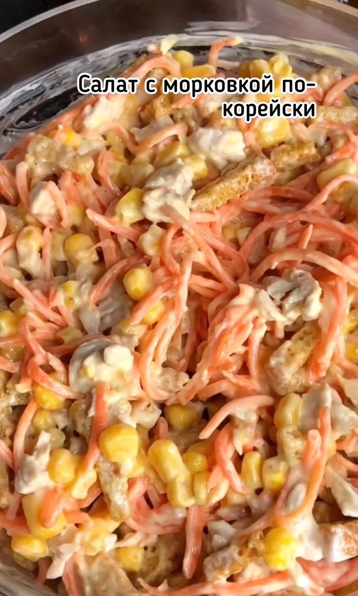 Привет, мои дорогие! 💖 Обожаю, когда можно приготовить что-то невероятно вкусное, не потратив на это кучу времени. И сегодня я хочу поделиться с вами именно таким рецептом! Это салат с морковью по-корейски, курицей и кукурузой. Он получается таким ярким, таким сочным, с лёгкой остринкой и хрустом… М-м-м, это просто песня! Секрет этого салата — в идеальном сочетании ингредиентов. Морковь по-корейски, которая уже заправлена и готова к использованию, нежная курица, сладкая кукуруза и хрустящие сухарики. Это же просто мечта, правда? И самое главное — вы можете использовать любые ингредиенты, которые есть в вашем холодильнике. Это так просто, что вы удивитесь! Ингредиенты (на 2 порции): Как приготовить (пошаговая инструкция): Вот и всё! Ваш невероятный салат готов. Подавайте его к столу и наслаждайтесь каждым кусочком. Это просто идеальный вариант для быстрого ужина, перекуса или даже праздничного стола. Ну что, мои дорогие, как вам такой рецепт? Кто уже готов бежать на кухню и радовать св