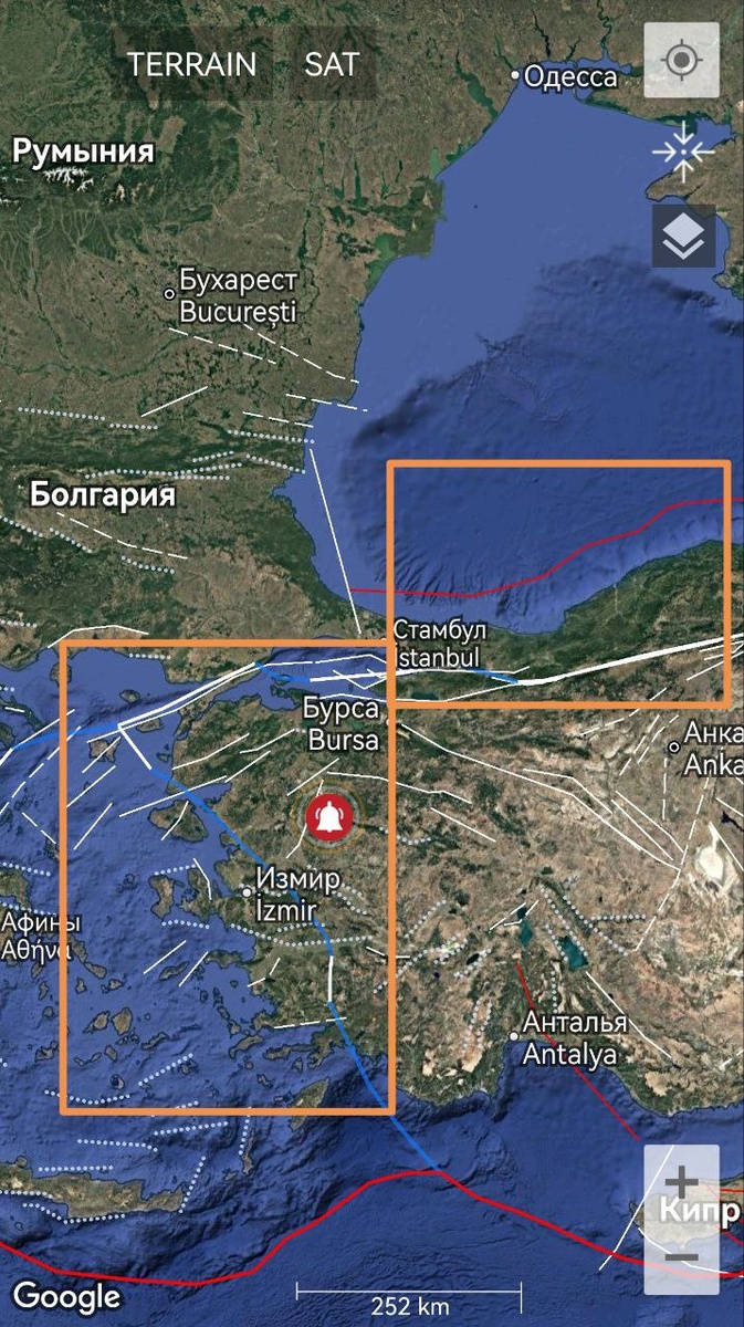 В северо-западной Турции вновь есть вероятность землетрясения с магнитудой до М6.2 в течение 9 дней. Ночью трассировался угол Анатолийской плиты, а утром уже зона от Стамбула на северо-восток (фото 5-6) ====== In northwestern Turkey, there is again a possibility of an earthquake with a magnitude up to M6.2 within 9 days. At night, the angle of the Anatolian plate was traced, and in the morning the zone from Istanbul to the northeast was traced (photos 5-6)