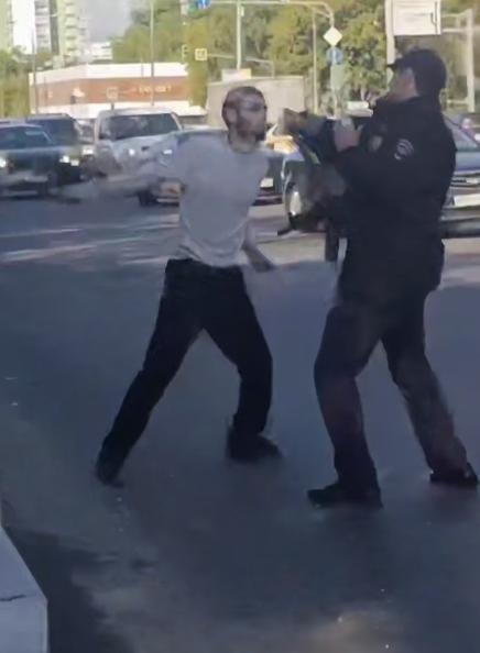 Один из полицейских получил легкое ранение в руку, пытаясь блокировать удар. Второй достал табельное оружие, но не стал стрелять — вокруг было слишком много людей, и выстрел мог привести к жертвам. Вместо этого стражи порядка попытались окружить нападавшего, чтобы обезвредить его без применения силы. Но мужчина не собирался сдаваться: он продолжал размахивать ножом, оттесняя полицейских к обочине.