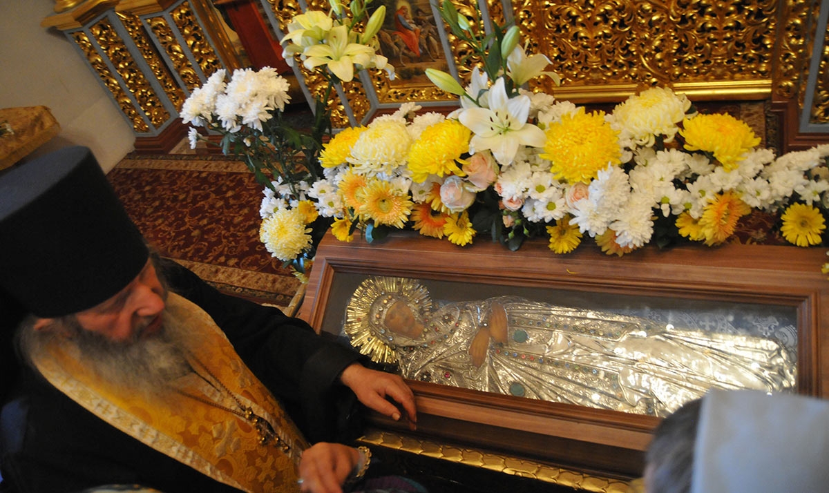 Канонических указаний здесь тоже нет. Если в храме есть место, то верующие крестятся и совершают два земных поклона, затем прикладываются к изображению Матери Божией – у Богородицы принято целовать руки.