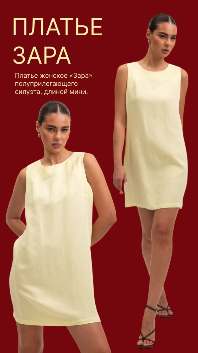 Платье «Зара» 👗 - Силуэт полуприлегающий, длина — мини - Бочок полочки и спинки выполнен цельнокроеный - Полочка с нагрудными вытачками для идеальной посадки - В среднем шве спинки — потайная тесьма-молния 🔒 - Горловина и проймы обработаны подкройными обтачками ✂️ Размеры и выбор - В наличии размеры от 42 до 52📏
