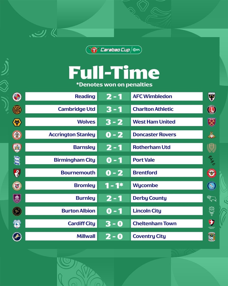 Результаты 2-го раунда Кубка Английской Лиги! @football_epl_stars