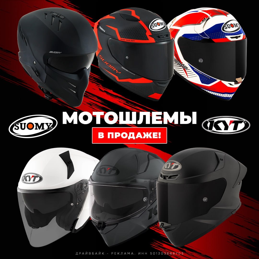 Мотошлемы SUOMY и KYT теперь в ДрайвБайк! Мы рады сообщить, что компания ДрайвБайк теперь является официальным поставщиком топовых мотошлемов SUOMY и KYT! Оцените инновационные технологии, бескомпромиссную безопасность и итальянский дизайн SUOMY, а также яркие решения и доступное качество от KYT. SUOMY: итальянское совершенство Бренд SUOMY, известный своими высокотехнологичными разработками и сотрудничеством с MotoGP, представляет новые модели, сочетающие: ✅Ультралегкие и прочные материалы (кевлар, карбон) ✅Улучшенную аэродинамику и вентиляцию ✅Инновационную систему крепления и удобную посадку ✅Стильный дизайн и широкую палитру расцветок KYT: динамика и доступность KYT – бренд, завоевавший доверие мотогонщиков и любителей агрессивного стиля. В ассортименте: ✅Шлемы с сертификацией ECE 22.06 ✅Облегченные корпуса и многослойные внутренние части ✅Яркие графические решения и кастомные дизайны ✅Оптимальное сочетание цены и качества SUOMY и KYT – это выбор профессионалов и тех, кто цени