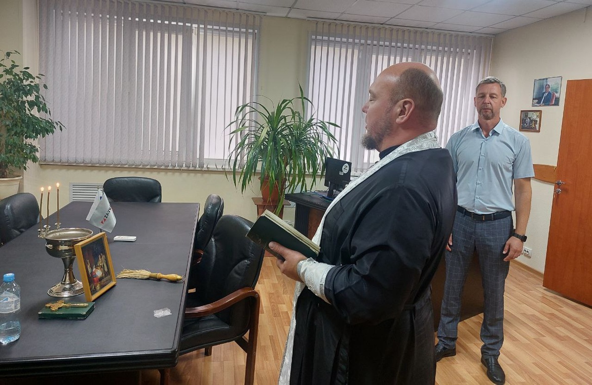 После смены руководителя на АО «ЗАВКОМ» решили освятить рабочий кабинет директора и помещения завода