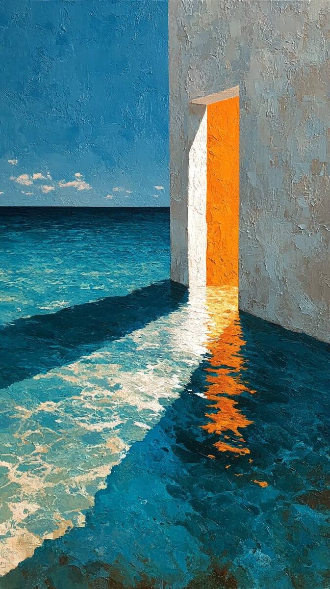 Truly, truly, I say to you, unless one is born of water and the Spirit, he cannot enter the kingdom of God. Minimalist painting --ar 9:16 --v 7 --stylize 750