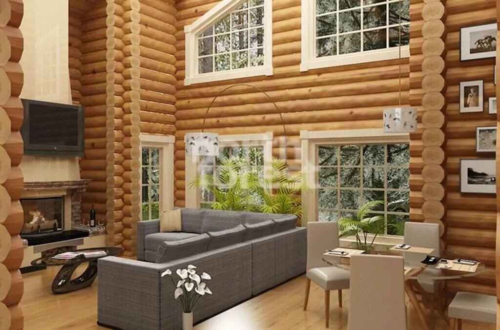 часть дома (обычно гостиная) лишена перекрытия между этажами. Благодаря