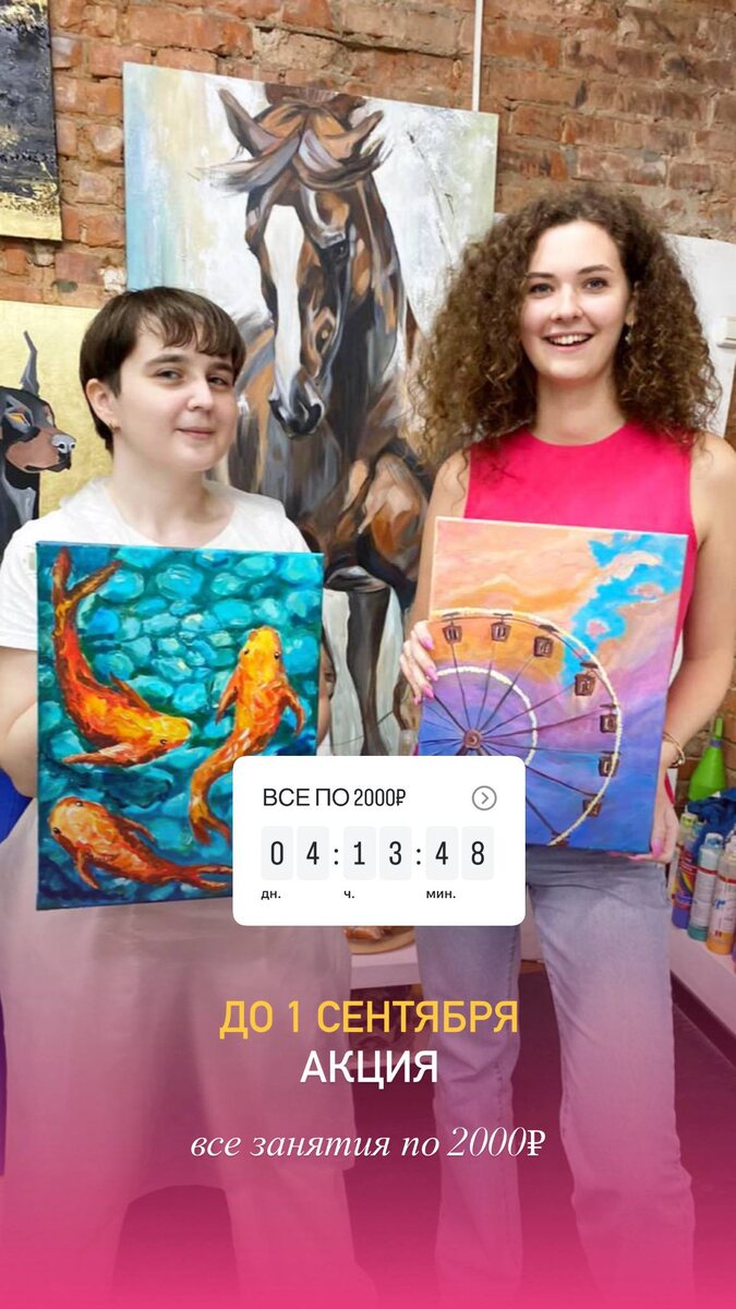 До 1 сентября в нашей студии пройдет акция «Все по 2000₽» Да-да, даже те техники, что стоят по 5000₽ Огромная распродажа Выбрать занятие себе можно и на даты в конце сентября или просто оформить сертификат, чтобы воспользоваться им и позднее! Бронирование мест и покупка сертификата тут - https://api.whatsapp.com/send?phone=79645566511 Далее пришлем все расписание на август - сентябрь