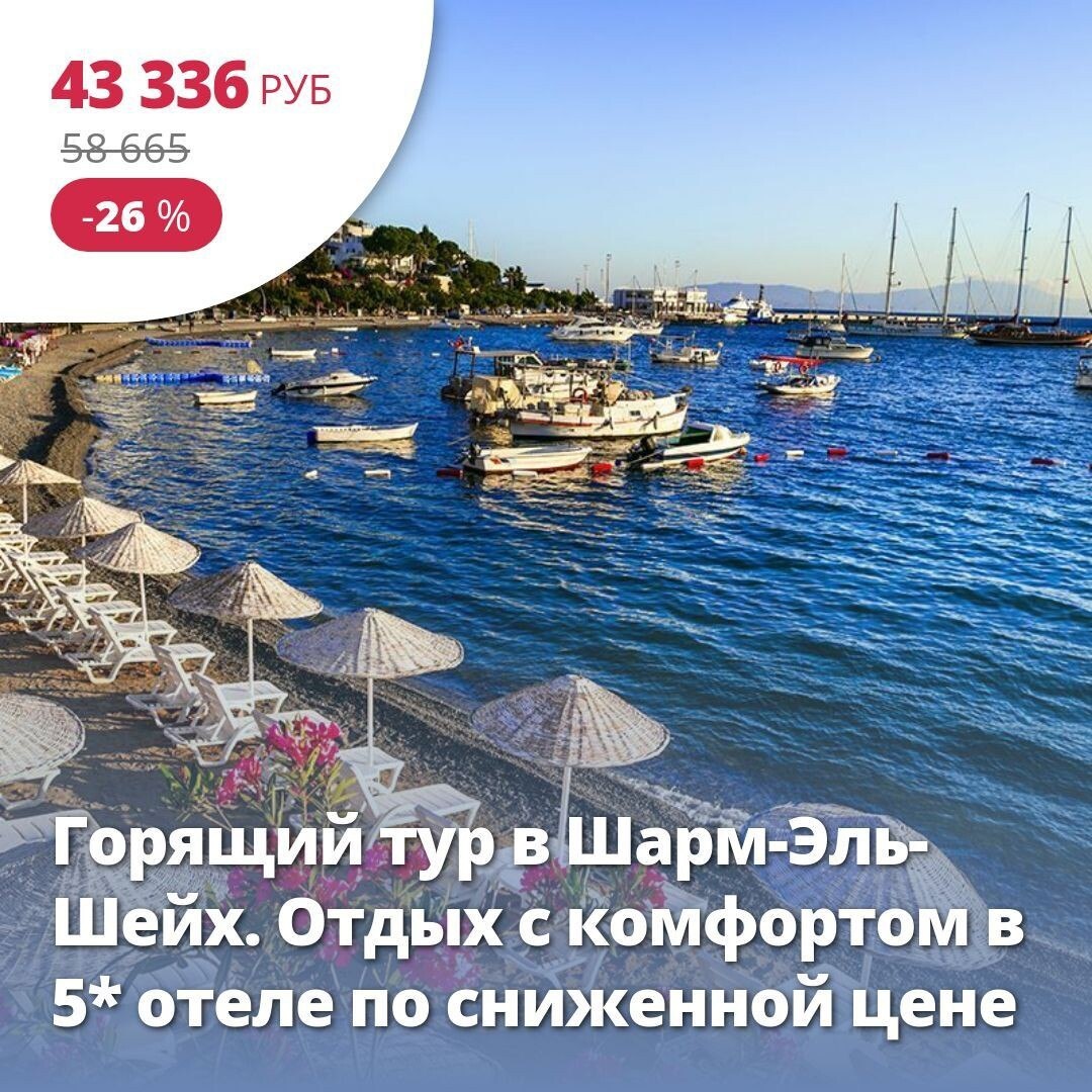 🔥 Цена тура: 43 336 руб/чел ❤️ Горящий тур в Шарм-Эль-Шейх. Отдых с комфортом в 5* отеле по сниженной цене 🏠 5*, Египет, Шарм-Эль-Шейх из Москвы 29 августа на 7 ночей. Курорт для респектабельного отдыха. Шарм-ель-Шейх знаменит своей бухтой Наама бэй, где есть прогулочная зона с кафе, сувенирными лавками, клубами, дискотеками. Отели высокого класса расположены на первой береговой линии, 3* и 4* отели, как правило, на второй береговой линии. Пляжи в Шарм-эль-Шейхе коралловые, с понтонами, вход в море в специальной обуви. Но кораллы — этой рай для дайверов, со множеством самых разнообразных рыб. Подробнее здесь: https://starttime.ru/search-tours?tvcard=g7nbtp Лучшие туры https://starttime.ru/search-tours #СтартТайм #ЛучшийТур