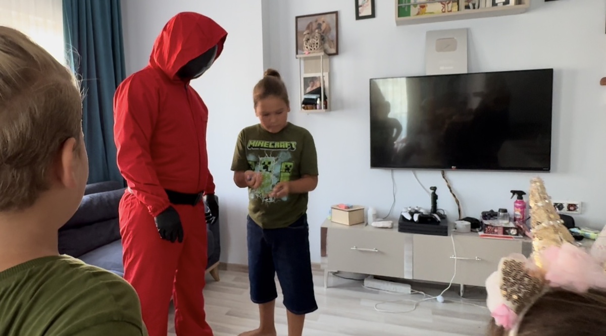 Хочу рассказать вам о том как проходил день рождения Демира! 🎭 Это был шок! Зять прилетел из Америки за несколько часов до праздника и появился в костюме из «Игры в кальмара» 😱 В нашей большой семье любят сюрпризы. А особенно — такие, которые запоминаются на всю жизнь! На день рождения моего внука мы с дочкой решили устроить не просто подарок, а настоящее представление. ✈️ Зять прилетел за несколько часов до торжества — всё по-тихому! Он 4 месяца жил в Америке, и его приезд держался в строжайшем секрете. Никто, даже дети, не знали. Только я и моя дочка. Прилетел буквально за несколько часов до праздника, сразу приехал домой. А дети были у меня дома. 🧥 Костюм из «Игры в кальмара» — купили заранее Мы с дочкой заранее заказали точную копию красного костюма и маски из сериала «Игра в кальмара». Зять переоделся мы обсудили и зашел на праздник эффектно и неожиданно. 🎉 Появление, которое никто не забудет Дети вошли в комнату, где был организован праздник и застыли на месте. Их ждал