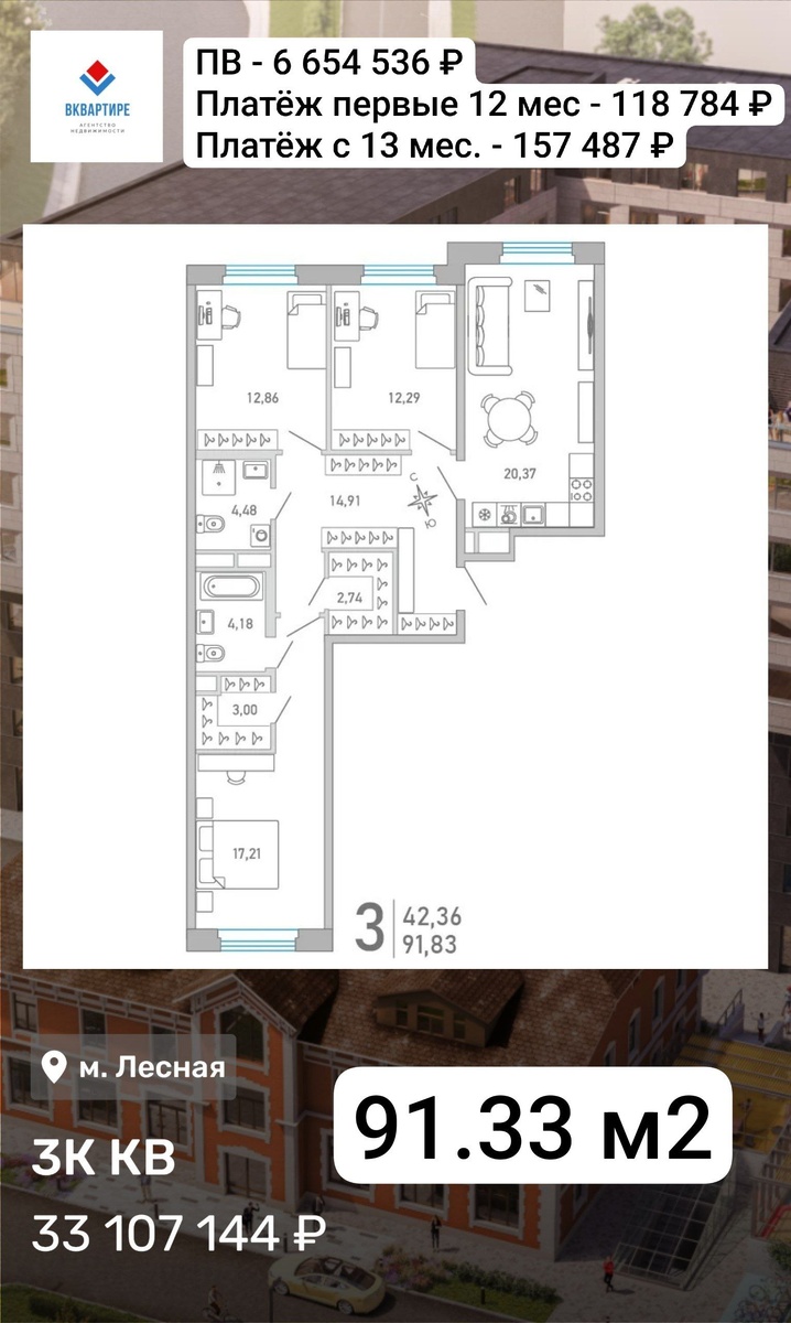Кейс 3К КВ, Приморский р-н 🌍🚇 Ⓜ️ Лесная, 15 минут пешком ⏳ Расчёт стоимости по семейной ипотеке от застройщика 💰: Стоимость квартиры с удорожанием - 33 107 144 ₽ 🛡️ ПВ - 6 654 536 ₽ 🎯 Ставка вначале - 3,5% 🔥 Действует, месяцев - 12 ✨ Ставка далее - 6% 🌐 Срок, лет - 30 📆 Платёж первые 12 мес - 118 784 ₽ 👀 Платёж с 13 мес. - 157 487 ₽ 🧑🤝🧑 Преимущества: Первая линия набережных Черной речки и Большой Невки 🌊🏞️ Закрытый двор 🔒 Теплый подземный паркинг 🗄️ Недалеко от метро 🚇 Недалеко центр города 🌃 Описание объекта: ЖК «Министр» — премиальное жилье бизнес-класса с панорамным видом на воды Большой Невки и Черной речки, закрытым двором и теплым подземным паркингом. Окружение включает живописные набережные и зеленые зоны: парки Каменного, Крестовского и Елагина островов, Лопухинский и Ботанический сады. Архитектурный стиль сочетает элементы постсоветского авангардизма и современные решения, подчеркивая связь различных исторических эпох. 🏠✨ Заинтересовали? Узнать подроб