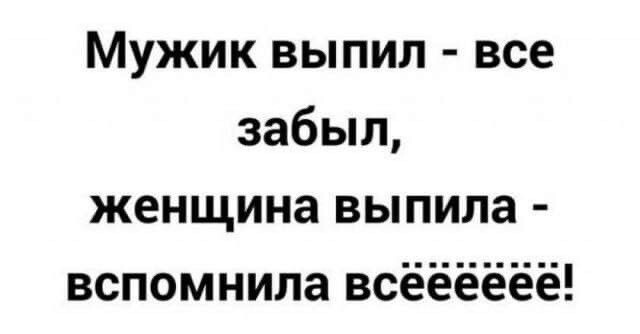 - Неси, неси. Мучает меня предчувствие, что когда допью этот, то не смогу членораздельно заказать её один. После того, как пожар от огнетушителя стал еще сильней, Варвара Петровна поняла где дети прятали от неё алкоголь. Стресс расшатывает нервы. Алкоголь может расшатывать человека целиком. Пьяный мужик ползёт по улице: - Мальчик, ты не знаешь, где живёт дядя Вова? - Дяденька, а ведь вы - дядя Вова! - Это я знаю! Только не знаю, где живу! Разговаривают два алкоголика: - Оказывается Фолкнер, Хемингуэй, Эдгар По и другие писатели были хроническими алкоголиками. - Я всегда тебе говорил,
