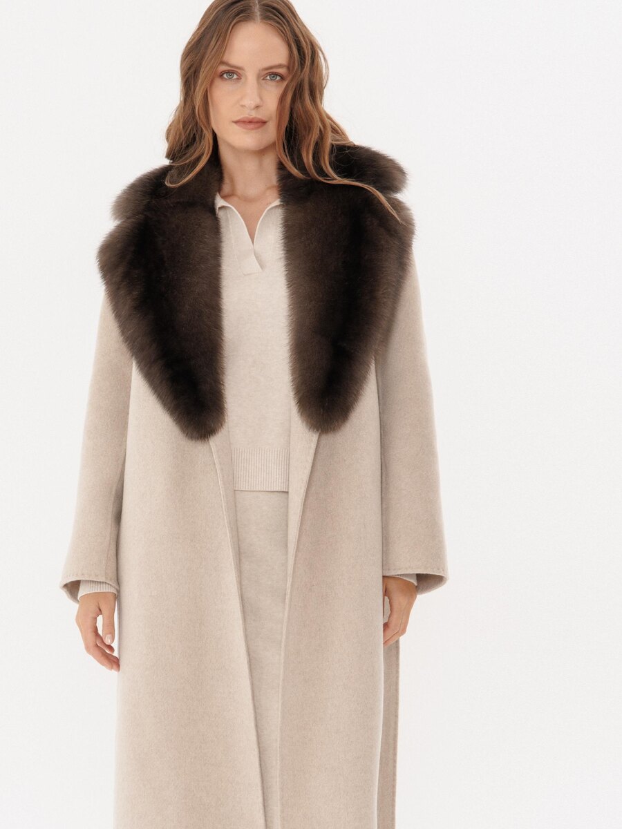 Пальто из 100% итальянского двойного кашемира с цельным воротником из натурального меха соболя