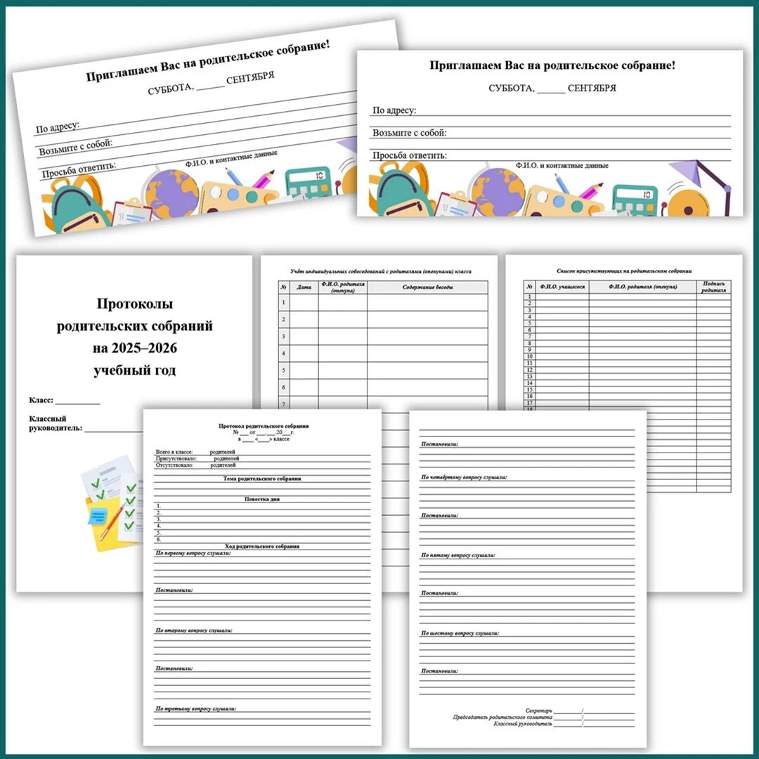 Полный и профессиональный набор шаблонов (22 стр.) для родительских собраний, начиная с первого. В пакет входит всё необходимое: Ключевые преимущества: Страница разработки здесь!