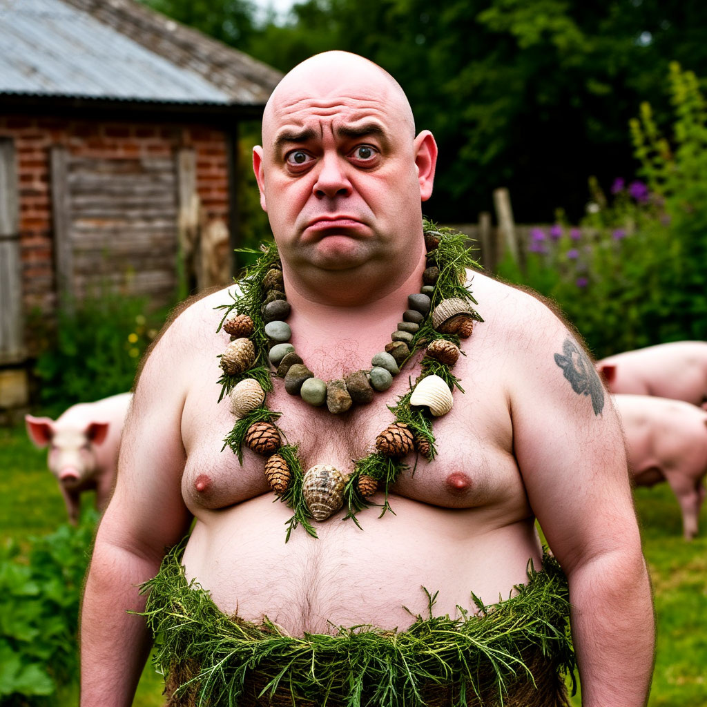 Мы зашли на участок соседа и остолбенели. Вчера по какой-то программе показывали одичавшее племя папуасов с островов Тихого океана. Они сознательно не впускают в свою жизнь цивилизацию, живут обособленно, независимые и агрессивные. Из одежды всякие пальмовые листья, из веточек и перьев аксессуары. Ну и вся аналогичная атрибутика дикой жизни в джунглях.