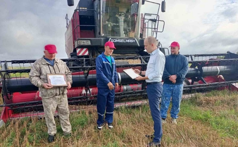 Обеспечение продовольственной безопасности - важнейшая задача для страны. Участие в жатве традиционно принимают и работники организаций, объединяемых Белорусским профсоюзом работников ЖКХ и сферы обслуживания. С успехами в уборке урожая тружеников Чаусского УКП "Жилкомхоз" и КСУП "Чаусский Ремстрой" от имени отраслевого профсоюза поздравил председатель Могилёвской областной организации Павел ЖУЙКОВ, вручив им дипломы и денежные сертификаты. - В пору страды Ваша помощь ценится на вес золота, - отметил, общаясь с участниками жатвы, профсоюзный лидер. В числе награждённых - Дмитрий ЛЮБЕНКОВ, плотник 4 разряда КСУП "Чаусский Ремстрой", отец 7 детей, работники Чаусского УКП "Жилкомхоз" - оператор котельной Юрий КОЗЛОВ и водитель Дмитрий ШУТИКОВ. Все трое мужчин комбайнёры-тысячники.