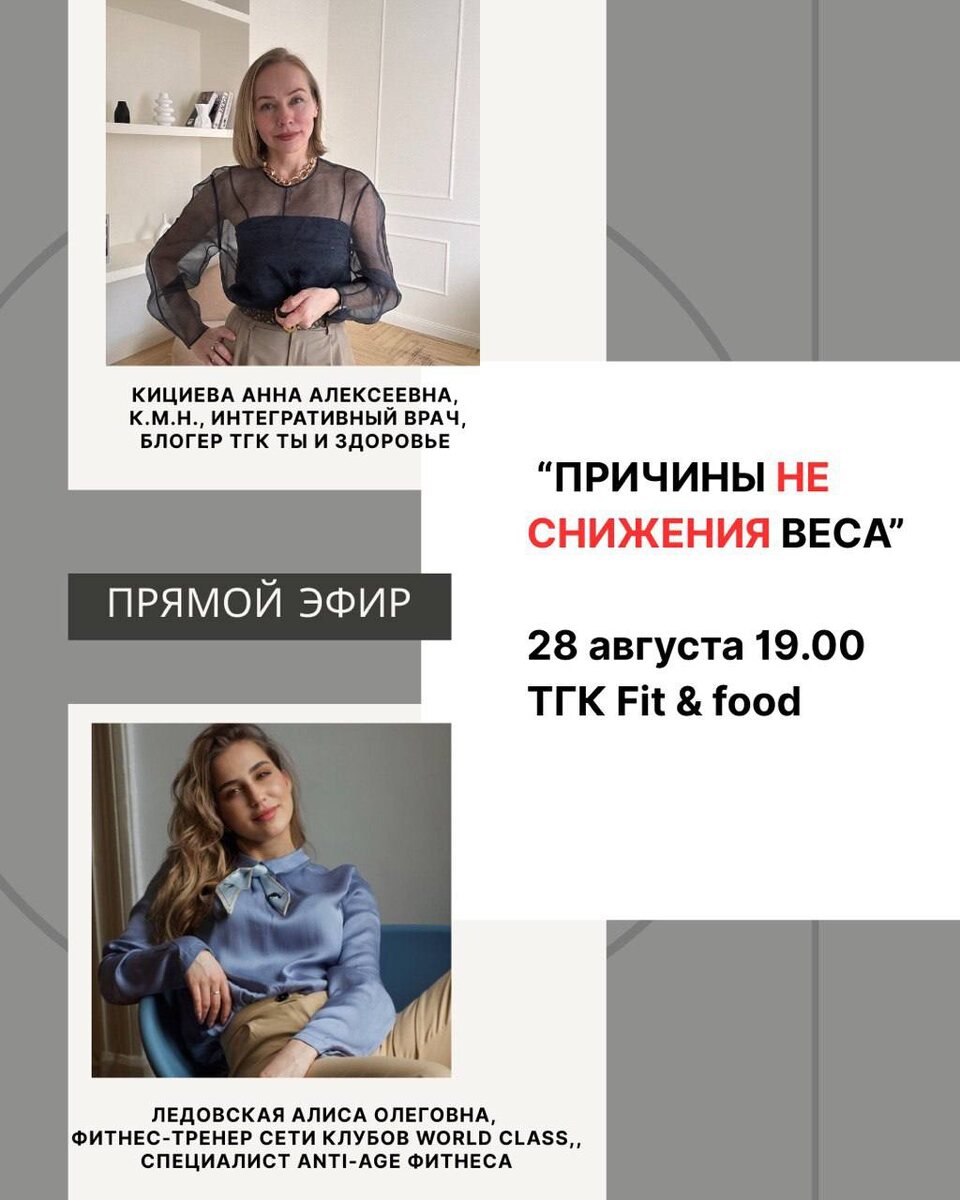 ❗️Друзья, не секрет, что несмотря на тренировки и правильное питание, не всегда удается достичь желаемого веса. ❓В чем может быть проблема? В прямом эфире я и фитнес- тренер обсудим: ✔️какие могут быть проблемы со здоровьем, не позволяющие достичь результата. ✔️ как можно, работая с врачом-нутрициологом и фитнес-тренером, получить наиболее эффективное решение🔥 ❗️Встреча пройдет в ТГК https://t.me/sw_fiteat 28 августа 19:00-19:30 Пишите вопросы заранее в комментариях! ⬇️