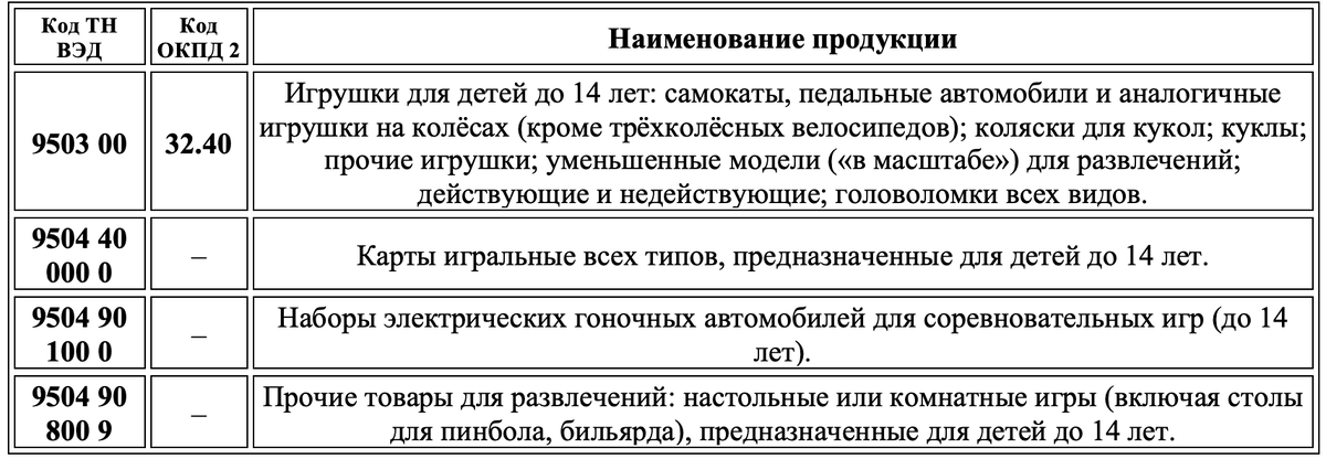 Под маркировку попадают игры и игрушки для детей до 14 лет по кодам ТН ВЭД 9503 00, 9504 40 000 0, 9504 90 100 0, 9504 90 800 9 и ОКПД2 32.40.