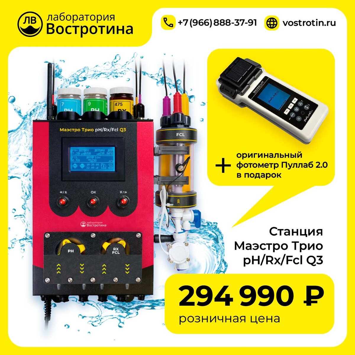 Акция! Пять последних дней лета — пять фотометров для вас в подарок! До конца лета к каждой станции Маэстро Трио (pH / Rx / свободный хлор) мы дарим оригинальный фотометр PoolLab 2.0. (с поддержкой от WATER-ID) Маэстро Трио Q3 укомплектована измерительной ячейкой со счётчиком потока, датчиком температуры, управляет фильтрацией и нагревом, а цифровой порт UMB открывает возможности для подключения блоков автоматики и сенсорных экранов. Новинка! Всего 5 комплектов и всего 5 дней. Телефон своего менеджера вы знаете ) Если нет, то звоните сюда +7 966 888 37 91 ООО "Лаборатория Востротина" Не проморгайте это лето!