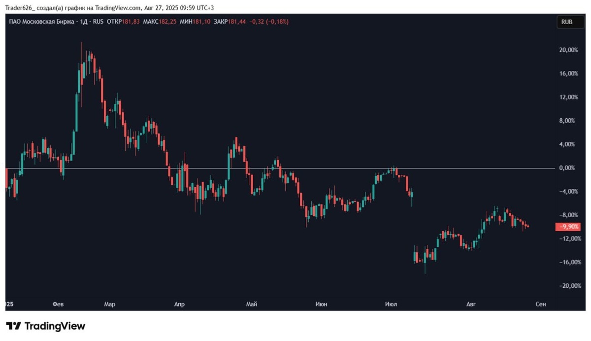 Отчет Мосбиржи: снижается ставка снижается прибыль Отчет Мосбиржи: снижается ставка снижается прибыль Мосбиржа отчиталась за второй квартал этого года. Основные результаты: Комиссионный доход вырос на 14,8% до 17,8 млрд руб. Чистый процентный доход упал на 33% и составил 14,3 млрд руб. Чистая прибыль сократилась на 23% , до 15,1 млрд руб. Результаты получились в рамках ожиданий. Комиссионный доход растет на фоне оживления облигационного рынка: объёмы торгов выросли на 64%, а комиссии биржи почти на 78%. Также выросли комиссии на денежном (+21%) и срочном рынках (+22%). Даже платформа «Финуслуги» удвоила выручку. А вот с процентными доходами все печально. Клиентские остатки на счетах снизились вместе с ключевой ставкой. С дальнейшим снижением ставки процентные доходы продолжат падать. Чистая прибыль сократилась на 23% до 15,1 млрд рублей. Рост комиссионных доходов пока не может компенсировать падение процентных. Если тренд продолжится и остатки инвесторов на счетах будут умень