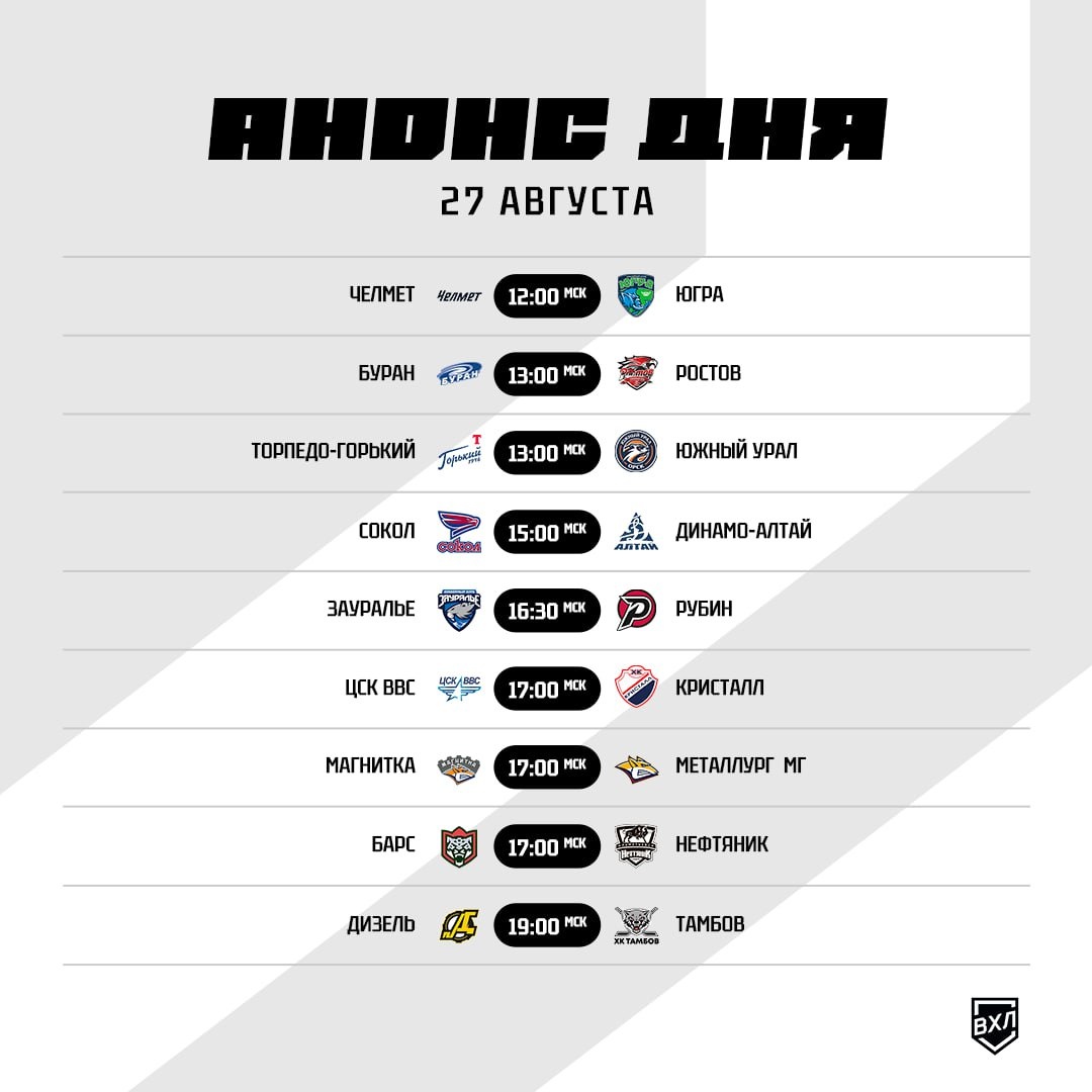 🥅Анонс дня в ВХЛ🏒 Последний день турнира в Казани, а в Пензе начинается борьба за Кубок «Дизеля». Всего же сегодня команды сыграют сразу 9 (!) матчей @nhockey