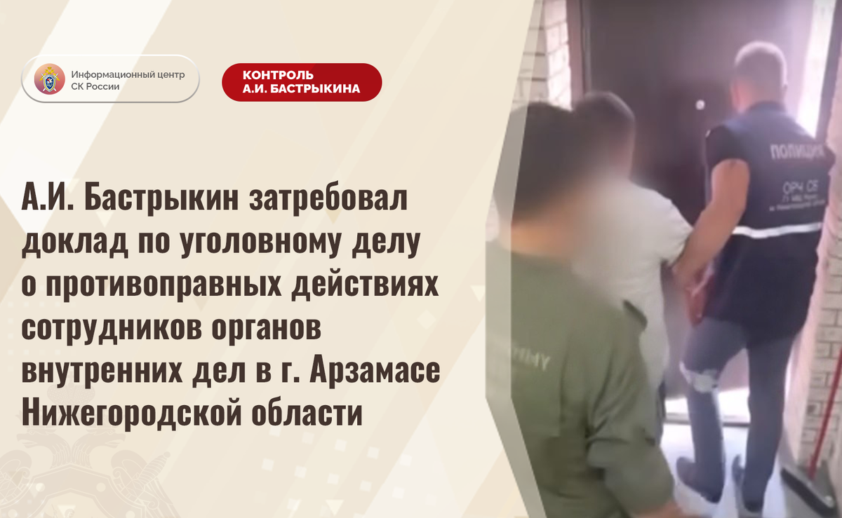 А.И. Бастрыкин затребовал доклад по уголовному делу о противоправных действиях сотрудников органов внутренних дел в г. Арзамасе