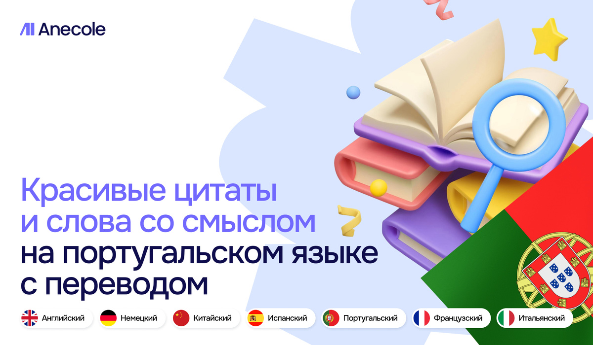 Португальский — язык, в котором поют фаду, пишут письма с тремя поцелуями и говорят от сердца. В нем есть и музыкальность, и простота, и глубина. Цитаты на португальском часто звучат как строки из песен или размышления, которые хочется перечитать. Если вам близки красивые фразы с настроением — вы точно оцените эту подборку. Она подойдет и тем, кто только начинает, и тем, кто давно влюблен в язык. Такие фразы легко запоминаются и оживляют даже базовый словарный запас. Особенно если вы проходите онлайн курсы португальского или ищете вдохновение на курсах иностранных языков. В этой подборке — фразы о жизни, любви, пути, выборе, силе и радости. Одни — известные афоризмы, другие — короткие, но емкие выражения, которые легко запомнить и приятно повторять. Прочитайте вслух хотя бы одну цитату — и вы почувствуете, как красиво и мягко звучит этот язык. А если захотите говорить на нем свободно, попробуйте пробный урок в Anecole — и начните путь с фраз, которые вдохновляют. Найдите 2–3 фразы, кот