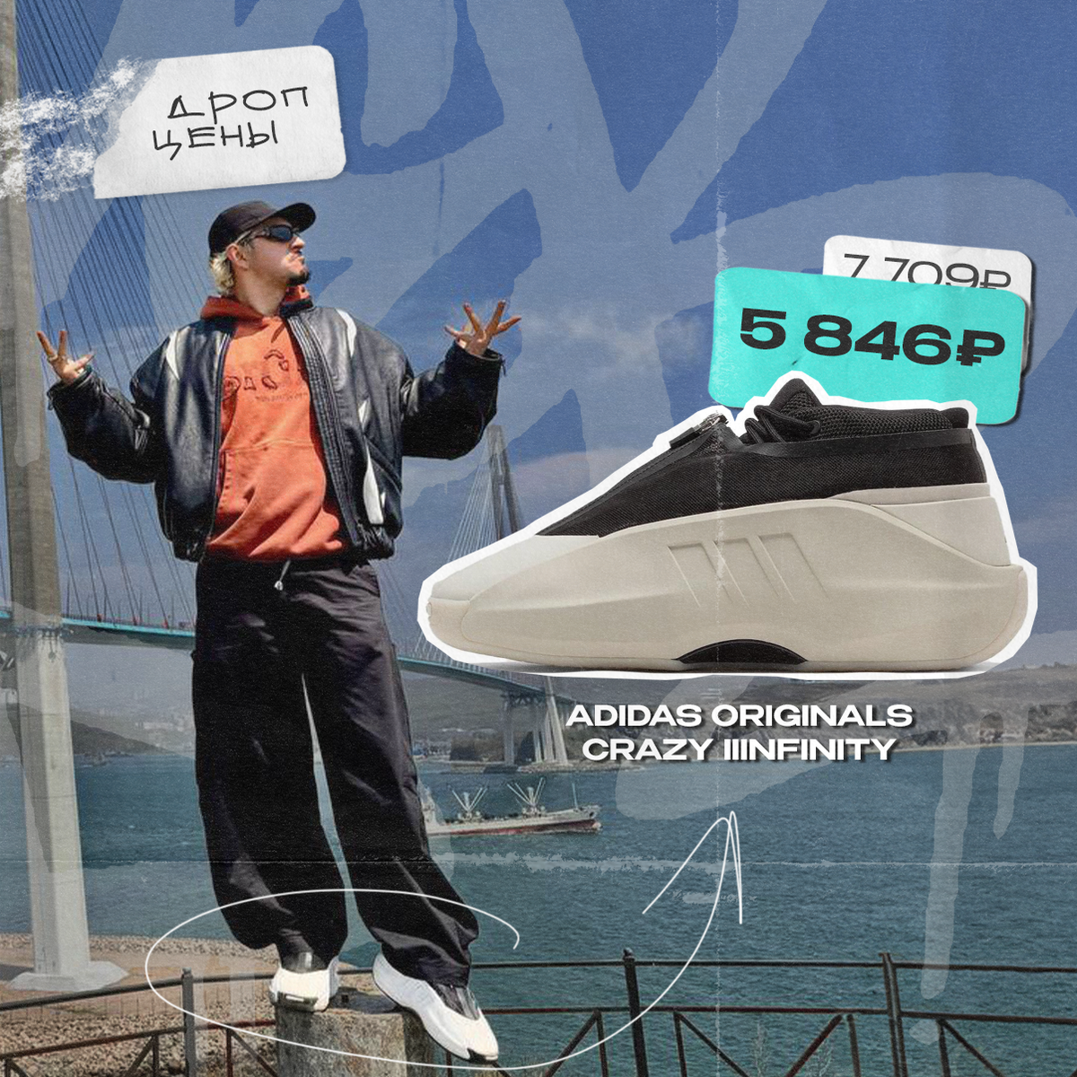 Sqwoz Bab покоряет новые вершины в Adidas Originals Crazy IIInfinity. Даже не знаем, что хотим больше — такую же фотку или такие же кроссы. Пара, как у рэпера, в «Дроп ценах», стоимость актуальна только сегодня. Adidas Originals Crazy IIInfinity, цена от 5 846₽* (вместо 7 709₽)