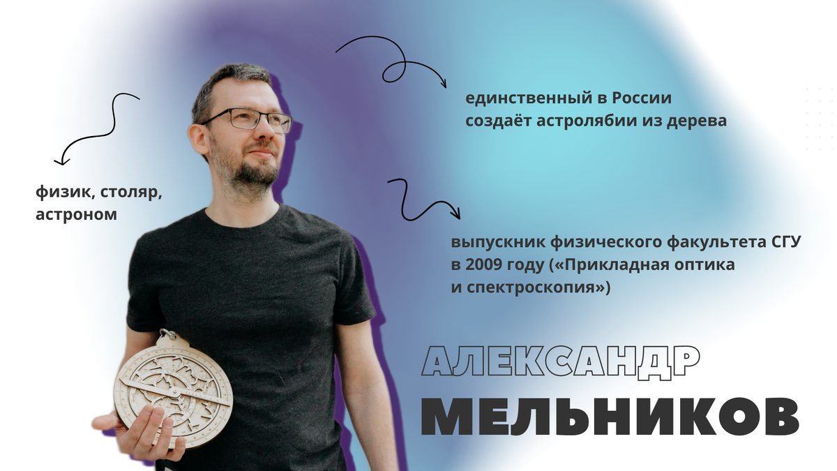 Космос всегда был притягателен для людей. Мы развиваем технологии, хотим познать тайны далёких галактик, запускаем ракеты и спутники. Сделать шаг в астрономию сейчас может каждый, главное – захотеть. Мы расскажем вам о космосе в Саратове через истории пяти людей, активно продвигающих эту тему в массы. Наши звёзды сошлись здесь, и они уже спешат поделиться своей любовью к неизведанным глубинам астрономии! Всё началось с того, что меня позвали рассказать про «Интерстеллар». Всем настолько понравилось, что после меня пригласили читать лекции по физике и астрономии для детей в Центре молодёжного инновационного творчества на «Сигнале». Мне не особо было интересно решать задачки, я хотел показывать интересное в физике. А что может быть интереснее, чем эксперименты? Опыт «Сигнала» подтолкнул меня к созданию своей собственной мастерской. Тогда я понял, что хочу делать что-то уникальное. Астрономическая и научная эстетика нравится с детства. У меня было не так много игрушек, но всегда находилис