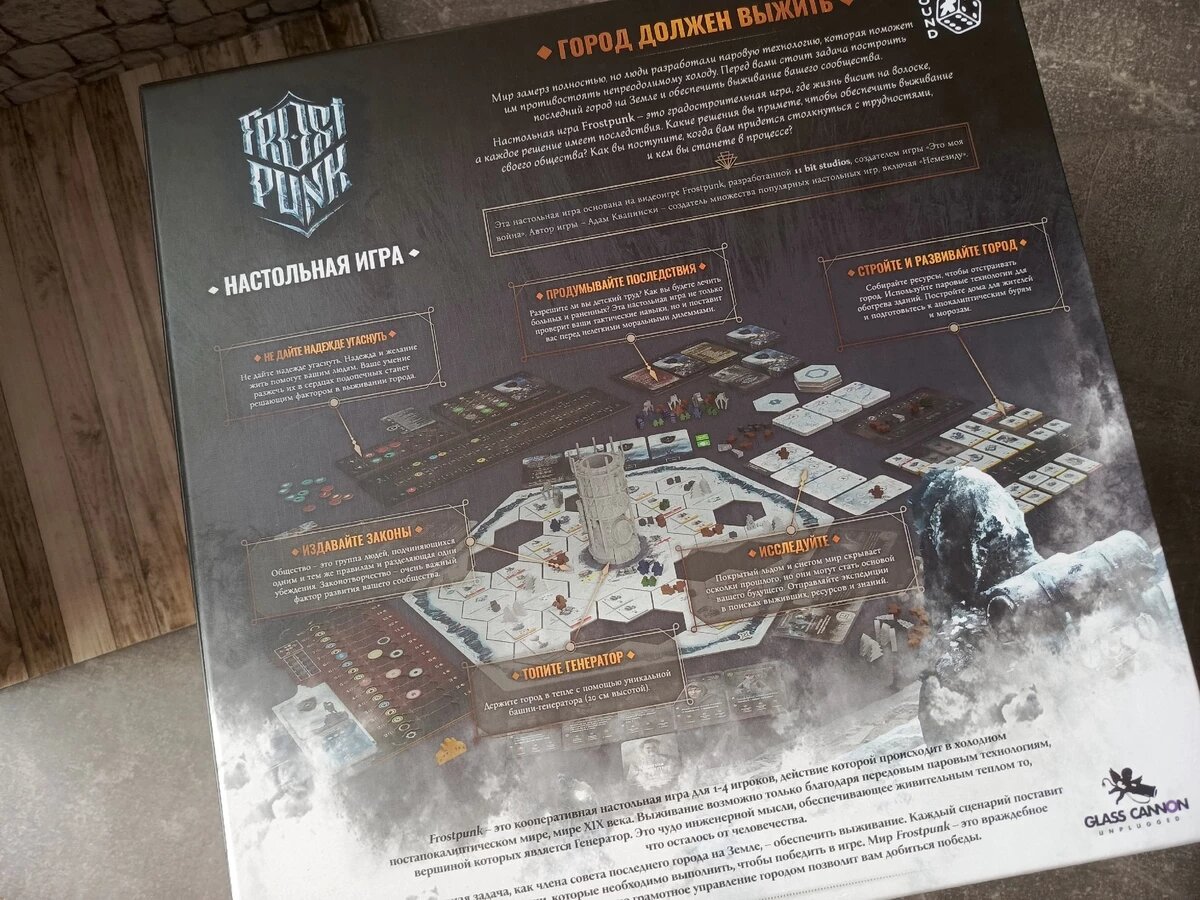Адам Квапинский, очевидно, вдохновлялся видеоигрой и перенёс в настольную версию все её механики. Атмосфера Frostpunk передана идеально: странные законы, загадочные события и борьба за выживание в условиях поломки генератора, недовольства жителей и появления новых детей. Всё это присутствует, к лучшему или к худшему.