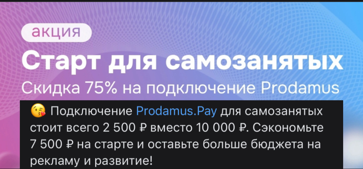 Акция, когда можно подключить Prodamus по супер выгодный цене 2500 руб вместо 10 000 руб для самозанятых продлена до 30 октября!