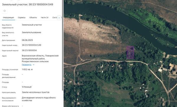 Название: Земельный участок с кадастровым номером 36:23:1900004:549 площадь 1652 по адресу Воронежская область, Поворинский муниципальный