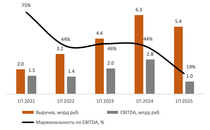 🛴 Отчет Whoosh за I пол. Кажется, назревает одна проблемка Еще по операционному отчету (разбор здесь) можно было сделать вывод, что фин. показатели компании просядут. Сейчас же смотрим на отчет за I пол. и делимся выводами. Выручка сервиса на фоне снижения среднего чека упала на 15% — до 5,4 млрд руб. Однако доля зарубежной выручки в 2025 г. выросла до 21% (1,1 млрд), тогда как в 2024 г. она была всего 9%. Но и это неудивительно — конечно, при снижении выручки в РФ пропорционально подрастет доля в ЛА (даже если бы был нулевой прирост). Себестоимость прибавила 23% — до 4,9 млрд руб. (сильнее всего выросло техническое обслуживание — на 86% — до 1 млрд руб.). Коммерческие и административные расходы практически не изменились и составили 782 млн руб. Получаем операционный убыток в 600 млн руб. против прибыли в 1,5 млрд руб. годом ранее. Да еще и рост финасовых расходов на 18% (до 1,4 млрд руб.) привели к тому, что: Убыток за I пол. 2025 г. составил 1,9 млрд руб. против прибыли 0,3 млр