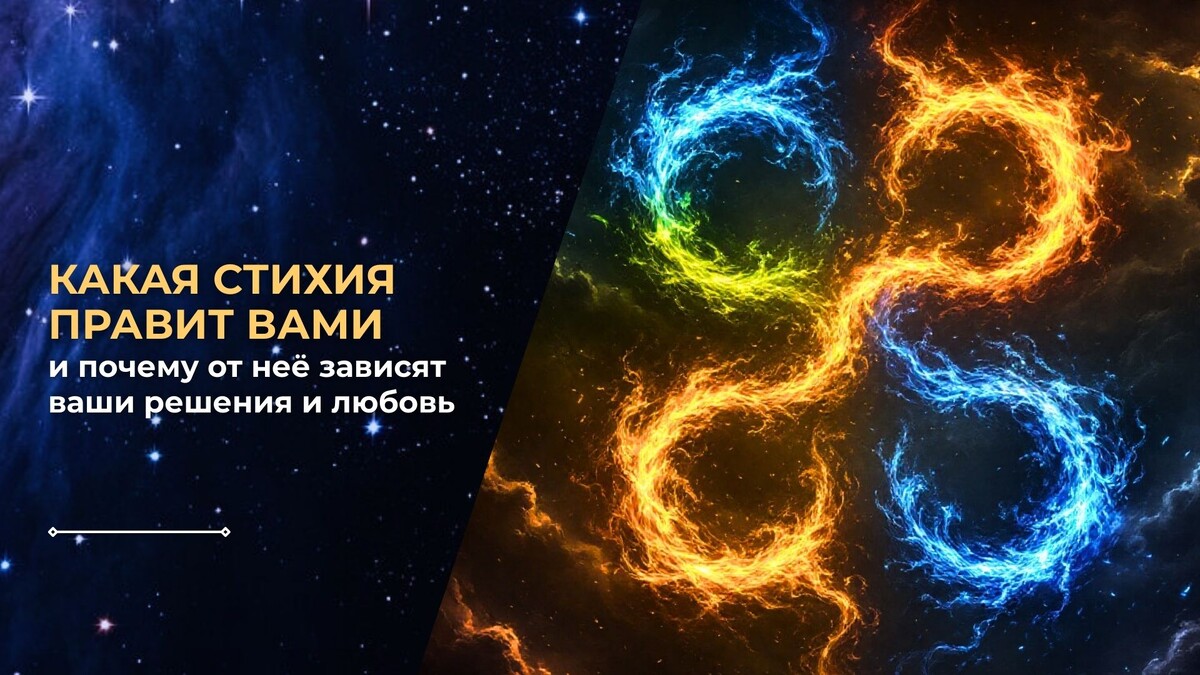 Сегодня мы разберём, кто управляет вами — Огонь, Вода, Земля или Воздух. Но учтите: этот разбор глубже, чем просто «я Овен, значит Огонь». В натальной карте стихии распределяются на все планеты — и могут менять привычное представление о вас.