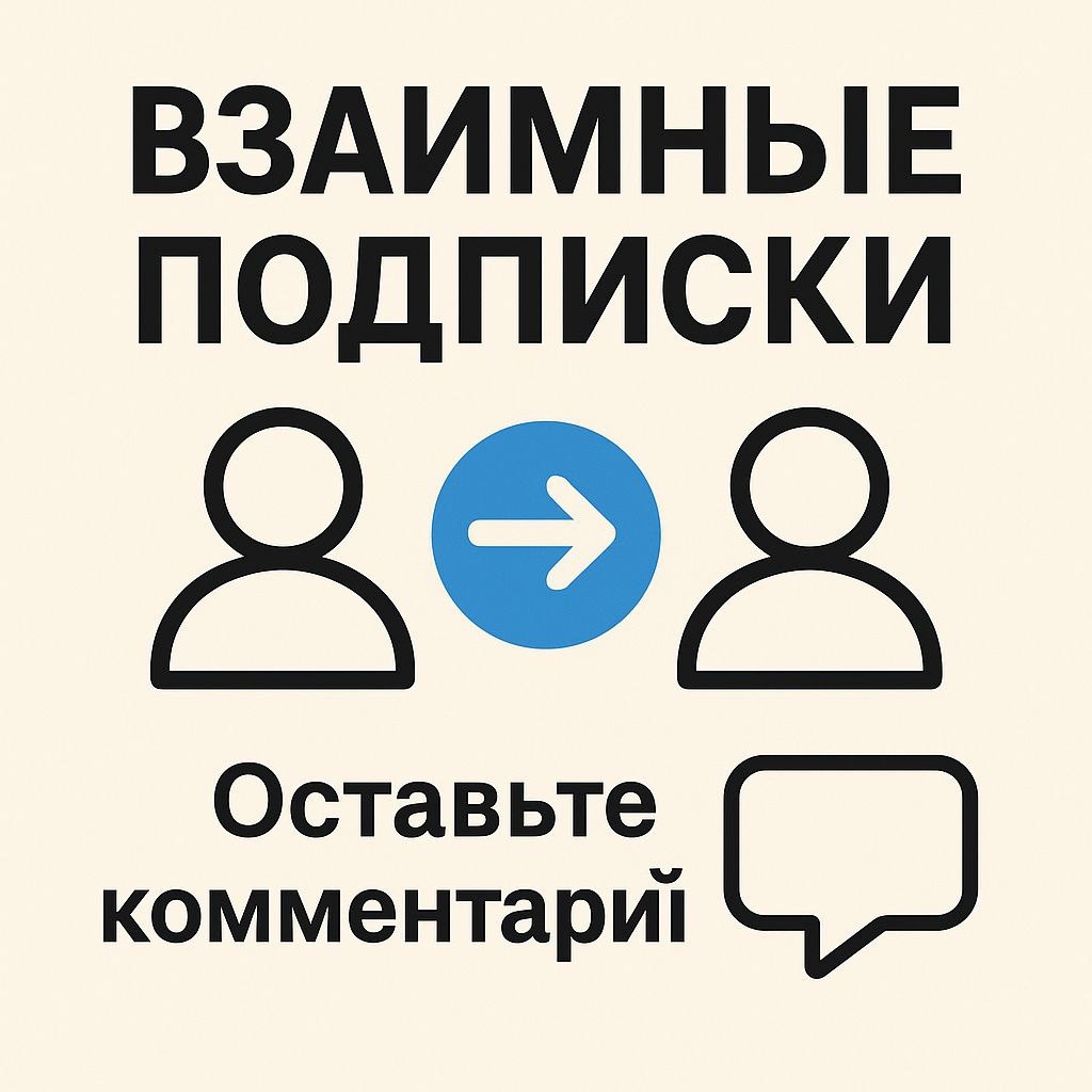 Взаимные подписки — это простой способ найти свою аудиторию и поддержать друг друга. Если вы хотите участвовать, всё очень просто: 1️⃣ Найдите автора, который ищет взаимных подписчиков. 2️⃣ Подпишитесь на него. 3️⃣ Обязательно оставьте комментарий, что вы подписались. 4️⃣ В ответном комментарии автор подтвердит, что тоже подписался на вас. Так каждый будет уверен, что взаимность соблюдена. 👍 Пишите в комментариях, кто ищет взаимные подписки — и поддерживайте друг друга! 💬✨