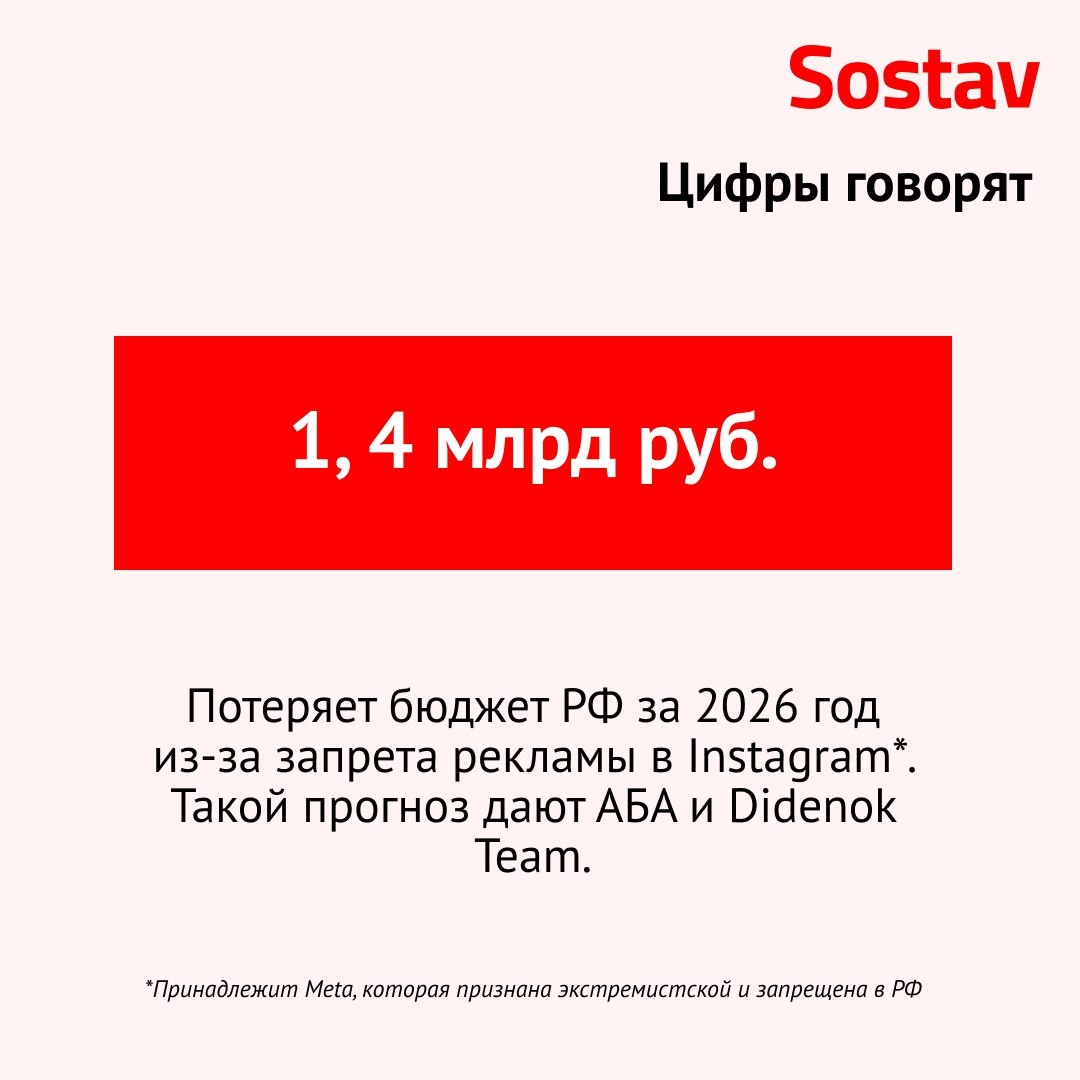 Налоговые потери от сокращения деятельности в сегменте Instagram* начались задолго до официального запрета на рекламу. По данным на август 2025 года, больше 50% участников АБА не работали с соцсетью, как и многие крупные заказчики, в особенности — государственные структуры. Учитывая этот факт, совокупные потери российского бюджета от прекращения рекламной деятельности в Instagram* в 2025 году составят не меньше 600 млн руб.