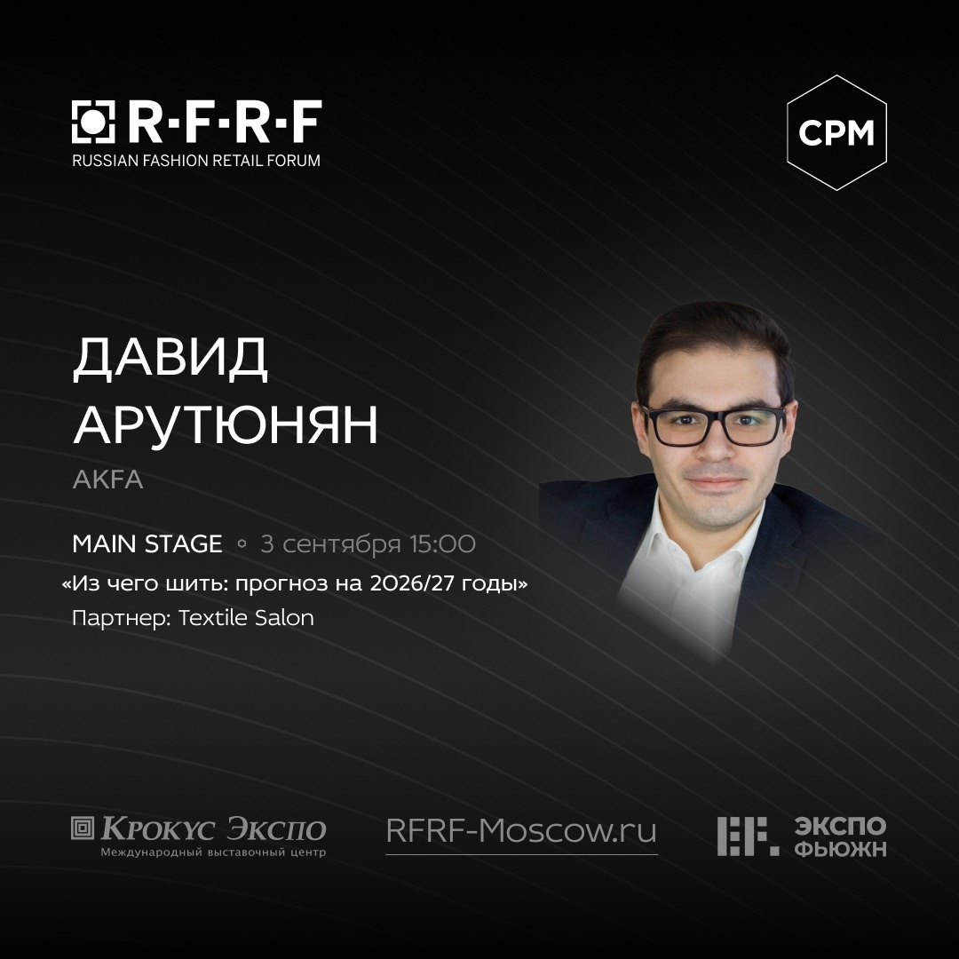 ——— 3 сентября мы приглашаем вас на открытую дискуссию «Из чего шить: прогноз на 2026–2027», где эксперт AKFA поделится аналитикой и прогнозами: Дата и время: 3 сентября, 15:00–16:00 Место: MAIN STAGE, Зал 14, Крокус Экспо Вход для посетителей бесплатный. Зарегистрируйтесь заранее и получите билет: получить билет Наш профиль в официальном каталоге CPM: ссылка Если у вас есть вопросы или нужна дополнительная информация, свяжитесь с нами: