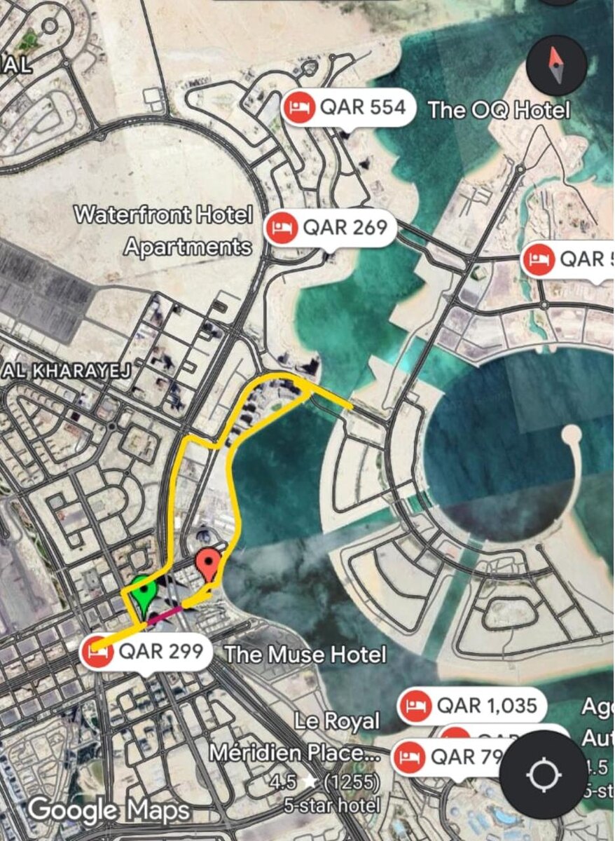 Если вы купили слот на T100 Qatar, то не откладывайте бронь отеля. Немного инсайда для подписчиков канала. Не смотря на то, что во всех рекламных материалах местом проведения Гранд финала серии T100 Triathlon World Tour называют столицу Катара, на самом деле соревнования пройдут не в Дохе. На фото - карта Fun Run (забега-спутника) и она расположена в соседнем с Дохой городке Лусайл. Транзитная зона, финиш и плавание триатлона будут расположены в том же районе. И если вы еще только раздумываете ехать или нет или уже купили слот - не тяните с бронированием отеля как можно ближе к месту на карте. С 1 по 18 декабря в Дохе пройдёт FIFA Arab Cup по футболу, поэтому туристов там будет предостаточно. А значит места в отелях тают на глазах.
