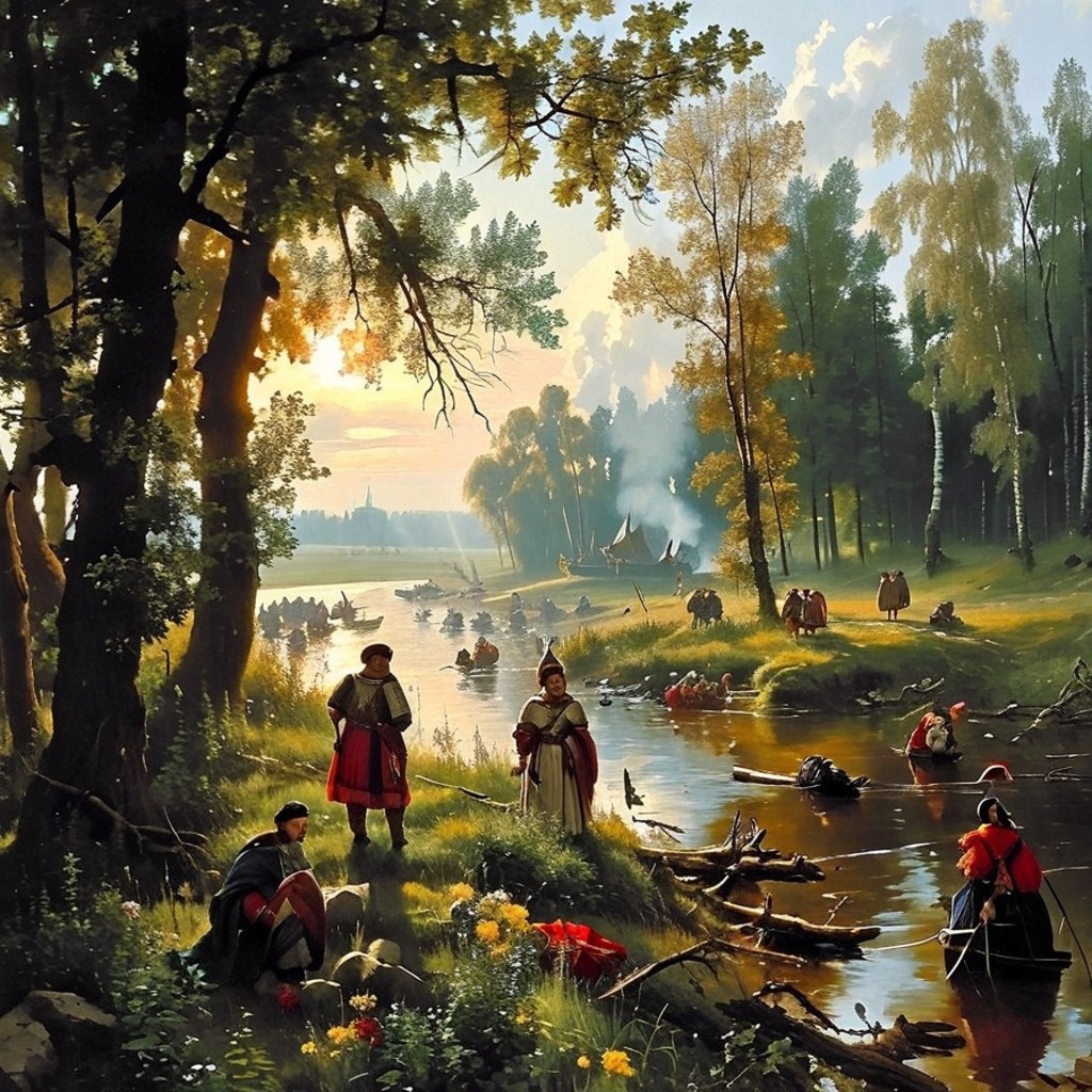 Со стороны Русского государства армии выстроились в строгом порядке, их ряды были дисциплинированы до мелочей. Русские воины, облачённые в тяжелые кольчуги и щиты, держались вместе, словно единое целое, давая вспомнить древние песни о героических подвигах предков. Командир русских войск, честный и отважный военачальник, твердо смотрел в даль – знал, что сегодня предстоит жестокая битва, способная изменить ход истории. А главное, он был уверен в победе над врагом. И знал как приведет своих воев к ней.