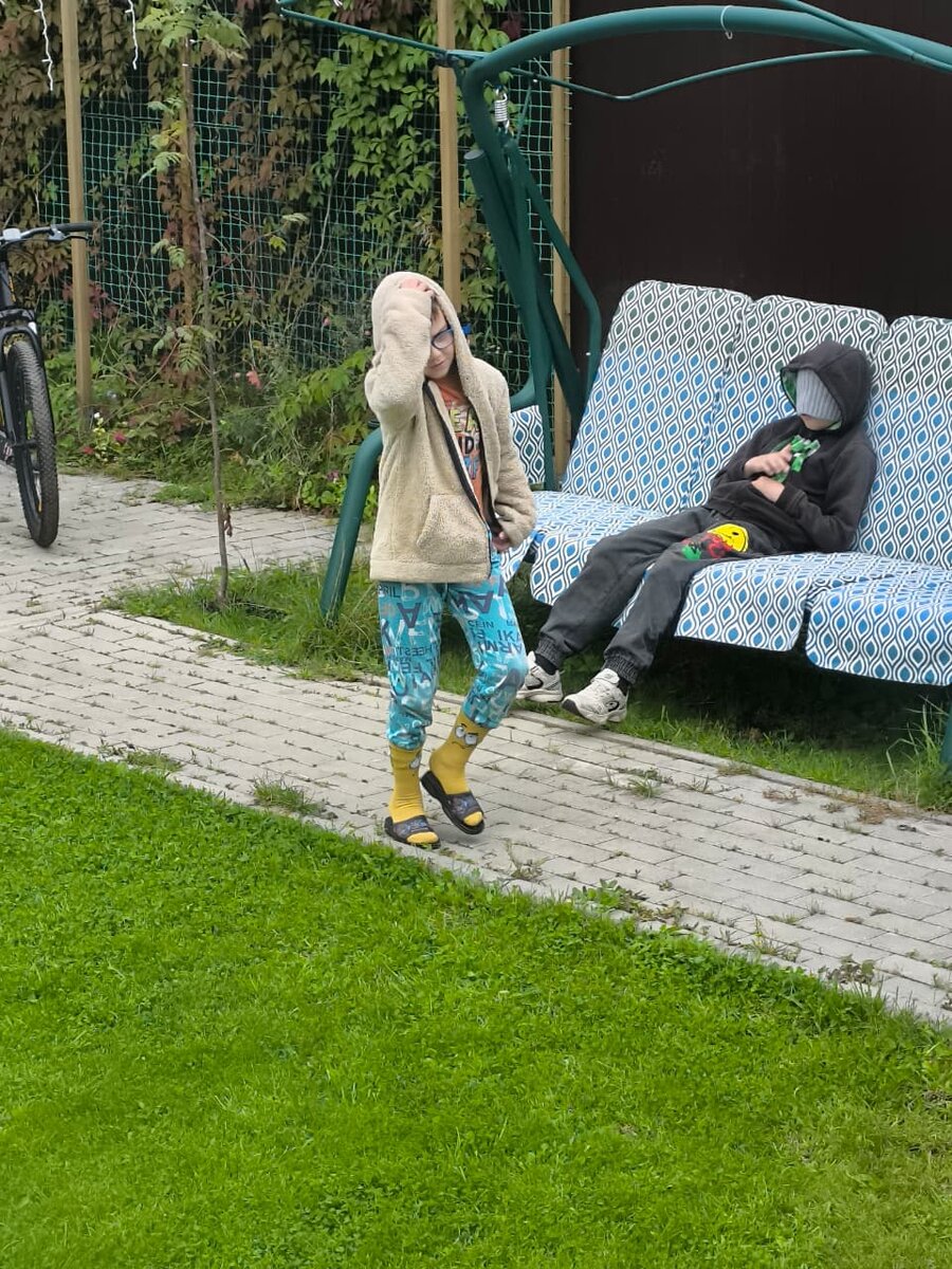 Утро вторника началось с безудержного веселья во дворе. Это потому что мать, я то бишь, выгнала всех троих (двух старших и собаку) на улицу, велела час не возвращаться. Первые пятнадцать минут нон-стоп выгоняла всех по очереди. Всех троих. Собаку тоже. Все домой щемятся. Переехали из квартиры в частный дом в 2022 году. Родили троих сыновей - Косте 10 лет, Мише 8 лет и Феде 1 год. Здесь рассказы о детях, о том, как мы в доме продолжаем обживаться, чиниться и красоту наводить, о собаке Ларси и о прочих важных моментах нашей жизни. За 15 минут один уже на велосипеде накатался, вторая выкопала ямищу под лестницу, третий тоже заскучал. Но потом вняли моим словам. Сидели, страдали. Все трое, да. 😁 Я выдала задание клубнику и огурцы собрать, что ещё как-то растут в такой морозный август, пока мы с Федей пока обед готовим и порядки наводим спокойно. День по плану должен был быть спокойный, а вот в среду и четверг придется побегать. Со школами и кружками в целом всё стало более-менее понятно,