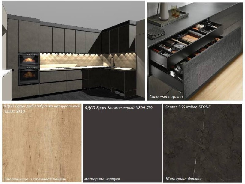 Помните, недавно мы начали рассказывать вам про наш проект преображения кухни ❓ Пришло время раскрыть секрет материалов, которые превратят 3D-визуализацию в реальность! ⭐Мы тщательно подбирали каждый элемент, чтобы создать гармоничное пространство: ➖Для корпуса глубокий серый матовый ЛДСП Egger, который станет элегантной основой ➖Столешница и стеновая панель из натурального ЛДСП Egger с дубовым оттенком ➖Для фасадов искрящийся пластик под камень, который обеспечит безупречную практичность. Как Вам выбор материалов? Что бы Вы выбрали для своей кухни? Делитесь своим мнением в комментариях ⬇️⬇️⬇️ А для расчета проекта пишите в чат нашему дизайнеру.