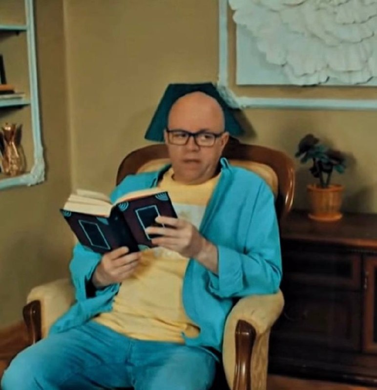 Никогда бы не подумал, что Сильвестр Андреевич читает Акутагаву. (Это если шутить.) А если серьёзно — это очередной пример того, насколько невнимательны к деталям реквизиторы, продюсеры и прочие декораторы, которые занимаются созданием интерьера. Я множество раз видел, как книги использовались для декорирования пространств на сьемках или в кафе/барах/ресторанах, но никогда не видел, чтобы те, кто подбирали книги для этого, действительно понимали что они ставят на полку/в кадр. Максимум на что они способны: расставить книги по цветам 🤡