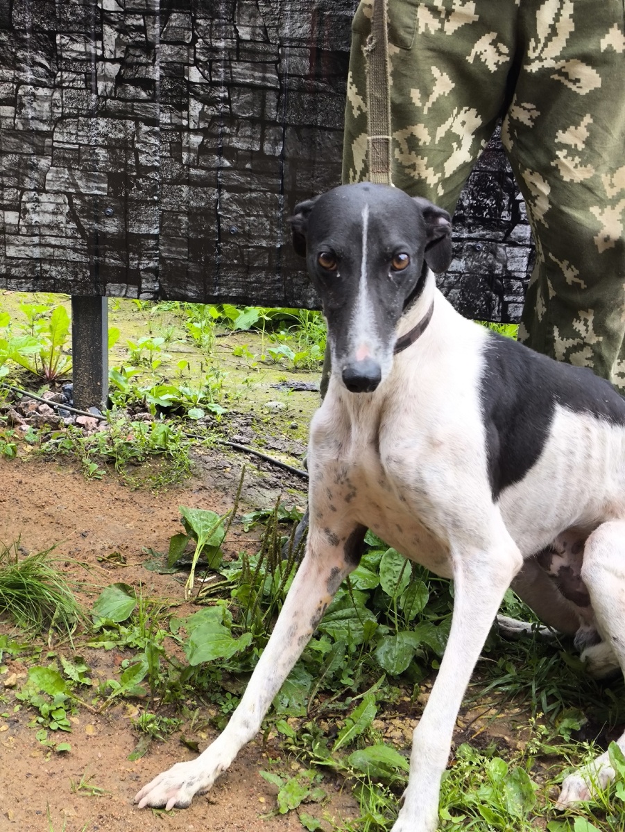 Грейхаунд на минималках или высокенький уиппет, вобщем парниша компактный очень, весит от силы 20 кг, а-ля моя Пикси.