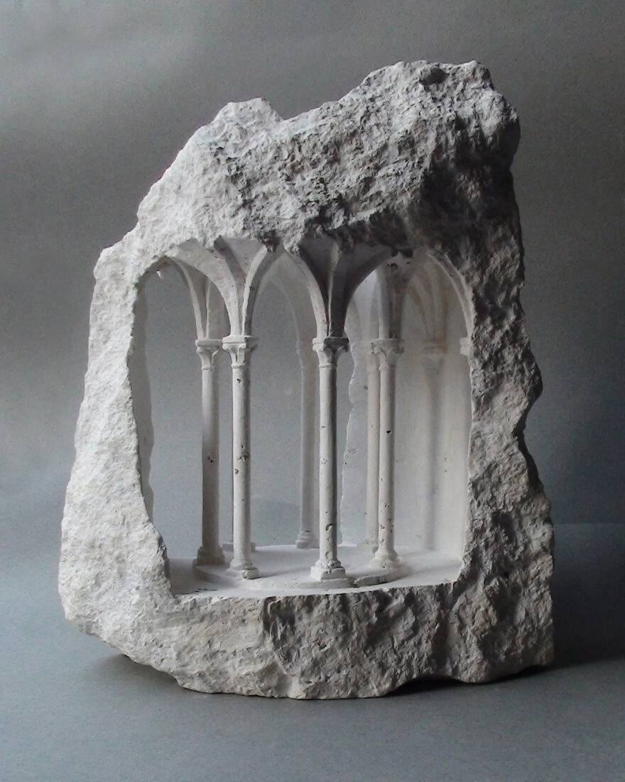 Представьте себе мир, где величие готических соборов умещается на ладони, где свет и тень танцуют в миниатюрных пространствах, а камень оживает, рассказывая истории о красоте, гармонии и вечности. Британский скульптор Мэтью Симмондс (Matthew Simmonds) – мастер, способный воплотить эту фантазию в реальность, создавая удивительные миниатюрные архитектурные скульптуры из мрамора и других пород камня, преимущественно известняка. Его работы – это не просто скульптуры, это – порталы в иные измерения, где архитектура становится искусством, а камень шепчет о вечном. Мэтью Симмондс, вдохновляясь средневековой архитектурой, создает сложные «внутренние миры» архитектурных сооружений, которые удивляют своей детализацией, мастерством исполнения и неповторимой атмосферой. Он словно волшебник, превращающий грубый камень в изящные шедевры, заставляющие зрителя затаить дыхание от восхищения. От Средневековья до Современности: Вдохновение и Техники: Мэтью Симмондс черпает вдохновение в архитектуре р